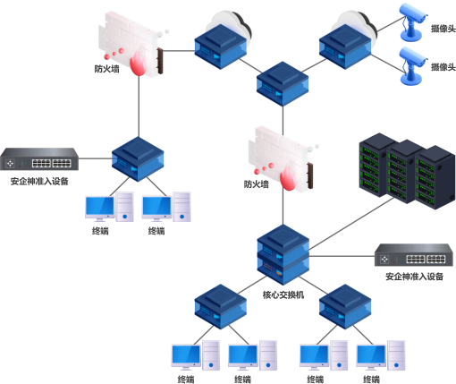 多种方式组合部署;接入设备自动发现;接入设备运维管理;多种准入控制技术,无需改变网络结构;NAT设备精准管控。